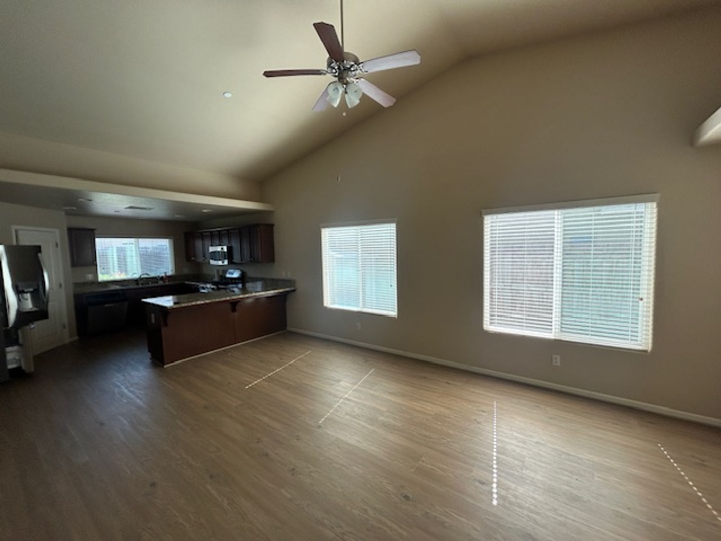 Welcome to this stunning 4-bedroom, 2-bathroom home located in the heart of Tulare, CA. This corner lot property boasts an open floor plan with vaulted ceilings, enhancing the spaciousness and inviting natural light. The kitchen is a chef's dream, equipped with a gas stove, stainless steel appliances, a built-in microwave, and a large pantry. The granite countertops and kitchen peninsula with seating add a touch of elegance and functionality. The home also features hard surface flooring in high traffic areas, ensuring durability and easy maintenance. The covered patio is perfect for outdoor entertaining or simply enjoying the California weather. The home comes with a washer and dryer, adding convenience to your daily routine. The master suite is a true retreat with dual sinks and a soaking tub. Additional features include ceiling fans, 2-inch blinds, and a cul-de-sac location for added privacy. This home is a perfect blend of comfort and modern living.