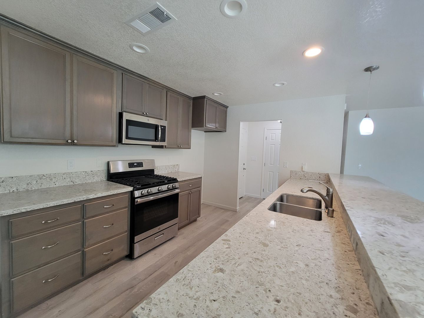 Welcome to this beautiful home in Southwest Visalia. This delightful property boasts three spacious bedrooms and two full bathrooms, offering ample space for comfort and relaxation. The home is located conveniently off of Walnut and Akers, placing you in a vibrant neighborhood with easy access to local amenities. The interior features hard surface flooring, adding a touch of elegance and ease of maintenance. The kitchen is a chef's dream, equipped with stainless steel appliances and a large breakfast bar, perfect for casual dining or entertaining guests. The home also offers a gas fireplace, creating a cozy atmosphere during cooler evenings. Step outside to a covered patio, an ideal spot for outdoor relaxation or hosting gatherings. With plenty of storage throughout, this home effortlessly caters to your organizational needs. Experience the perfect blend of comfort and convenience at the Beautiful Home Southwest Visalia.