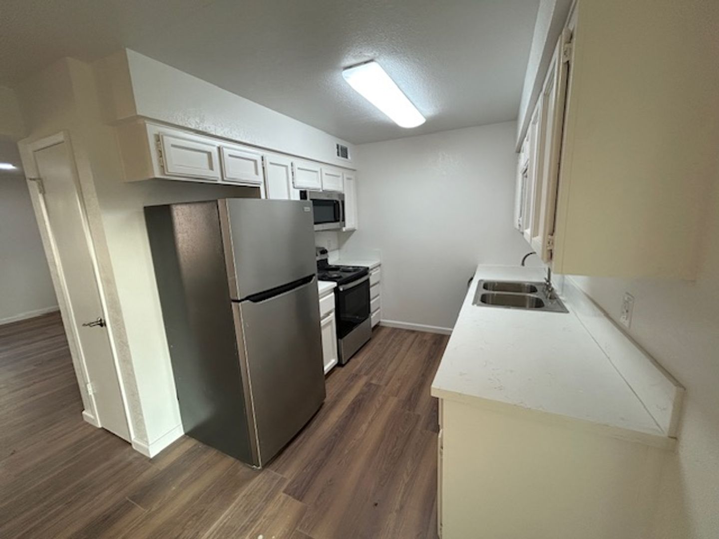 Welcome to your new home in Visalia, CA! This newly remodeled two-bedroom, one-bathroom apartment offers a blend of comfort and style. The apartment features hard surface flooring and new granite countertops that add a touch of elegance to the space. The kitchen comes equipped with a refrigerator and a washer/dryer, making everyday chores a breeze. The apartment also includes a small backyard, perfect for enjoying the California sunshine. Pet lovers will appreciate our pet-friendly policy. For those who work or study from home, high-speed internet access is available. A garage is included, providing parking. The property also boasts a swimming pool, perfect for cooling off on hot summer days. Plus, with easy access to shopping, all your daily necessities are just a short drive away. Experience the best of Visalia living in this beautiful apartment.