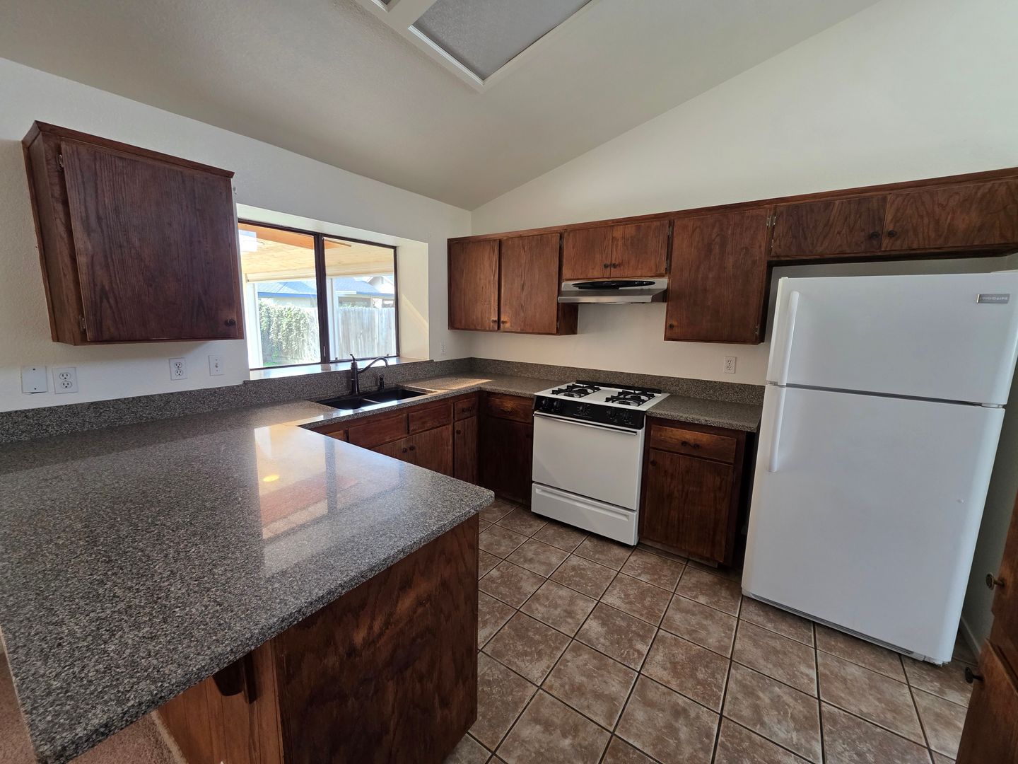 Beautiful Home in Southwest Visalia. Kitchen has granite counter tops, tile flooring, and a gas stove. Skylight over living room for natural lighting along with a warm fireplace complete the living room. All bedrooms have ceiling fans. Covered patio in the backyard.